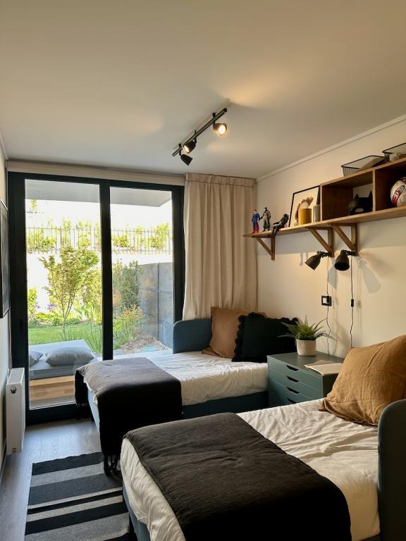 En piso uno: Tres dormitorios; El principal en suite con baño completo con ducha y walking closets; Baño dos completo para el uso de las otras dos habitaciones; Una sala de estar. Las tres habitaciones tienen salida al patio privado.