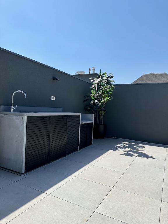 Desde los recibos se accede a terraza a todo lo largo y por escalera subes al nivel Rooftop, donde encuentras una gran terraza abierta con parrilla y piscina tipo jacuzzi.