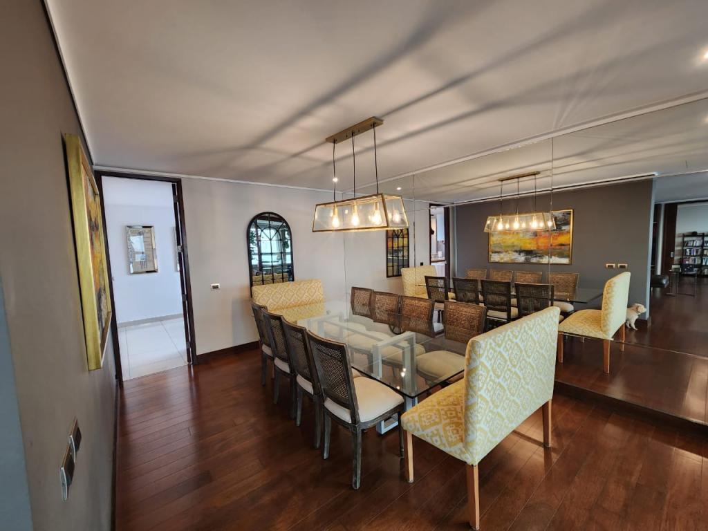 | Descripción: | Exclusivo dúplex de lujo en Vitacura, ubicación permite unas vistas extraordinarias a la ciudad de Santiago. El departamento en su primera planta se distribuye de la siguiente forma: Amplio hall de acceso; Baño de visita; Grandes recibos independientes con salida a terraza cerrada; Espaciosa cocina muy cómoda con centro de trabajo; Loggia, dormitorio de servicios con su baño completo; Área de dormitorios, son cuatro dormitorios, dos de ellos en suite, walking closets dobles; Cuatro baños; Segunda planta: Terraza con quincho cerrado con ventanal plegable. Cuatro estacionamientos y una bodega. El edificio cuenta con servicio de seguridad 24 horas, piscina, gimnasio, solarium, sala de reuniones, estacionamientos de visitas, entre otros. Metros útiles 281 M2 Terrazas 147 M2 Total 428 M2