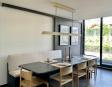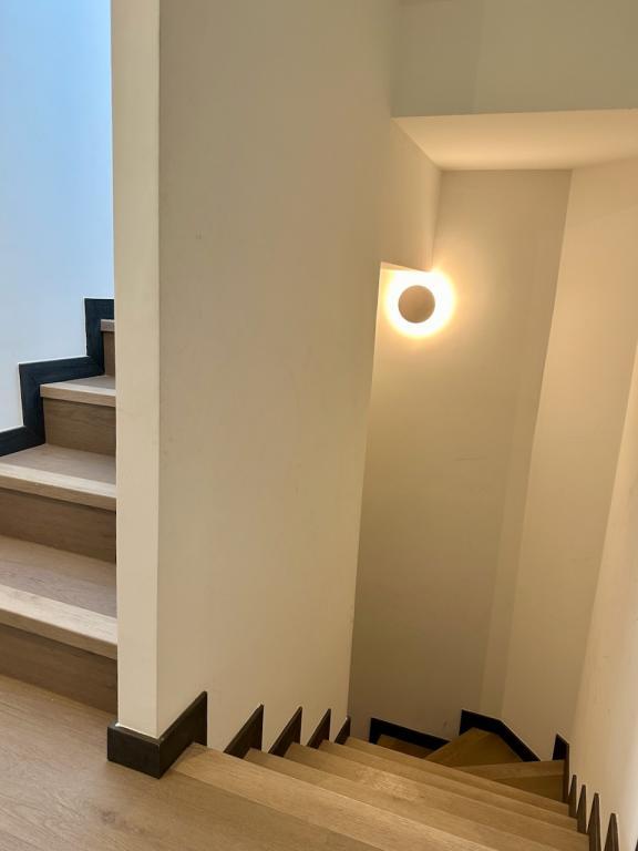 Su distribución es como sigue: en piso de acceso encuentra los recibos con salida a terraza; baño de visitas; cocina amplia en dos modalidades, abierta o cerrada; habitación de servicios con su baño completo. Desde la terraza exterior hay una escalera hacia el jardín. Desde el hall hay una escalera que conduce al piso uno internamente y al piso tres mirador.